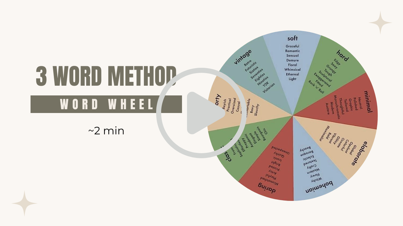 These are some of the most common things I hear from clients when they’re trying to determine which clothing truly resonates with them. Identifying what makes you feel your best can be challenging—but one of the most helpful tools I’ve found is Allison Bornstein’s ‘3 Word Method.’