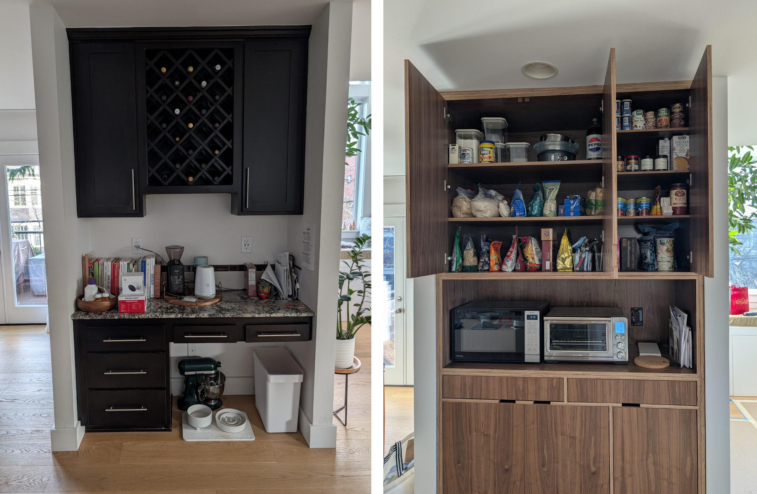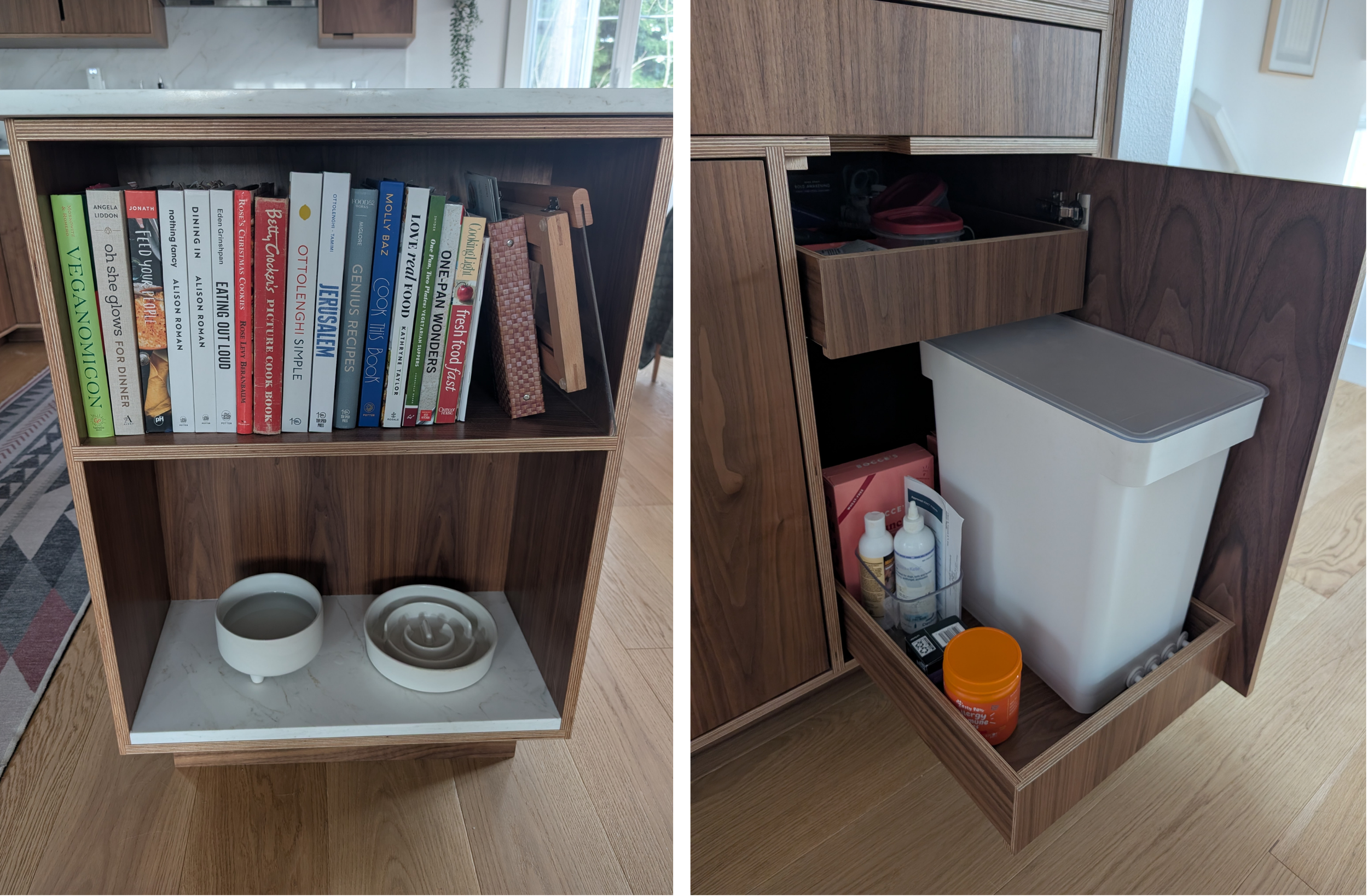 AFTER: Dog feeding station in the island + dog food cabinet in our pantry area
